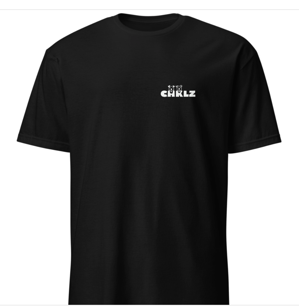 CHKLZ limited "FIGHT THE PAWER" logo on a black t-shirt with white font and design.